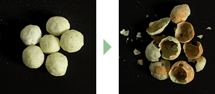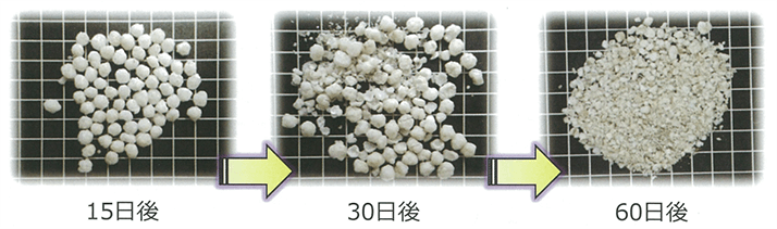 被膜の主成分である硫黄は、微生物によってすべて分解され、作物の養分となり、自然にかえるので、土壌に殻を残しません。